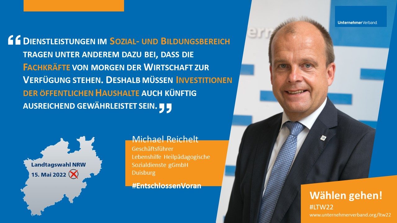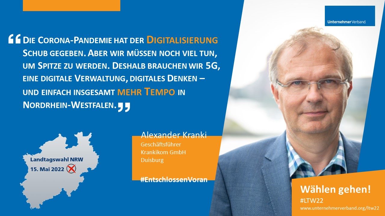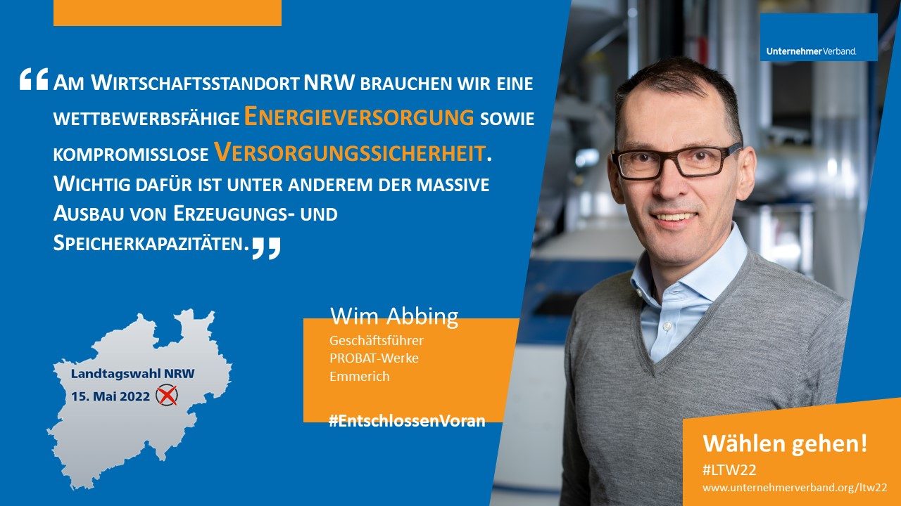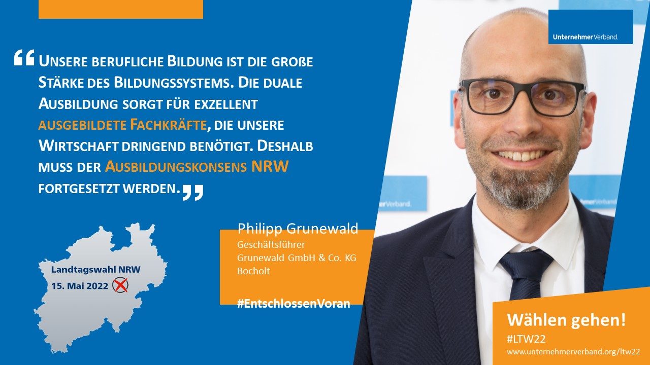 Von einer neuen Landesregierung fordere ich, dass sie alles tut, damit Nordrhein-Westfalen ein starkes Land bleibt, um Wirtschaft zu stärken und Wohlstand und Arbeitsplätze zu sichern. Wir brauchen hierzulande Vorfahrt vor Innovationen und Investitionen. Und auch wenn die Zeiten weltweit ruppig sind, dürfen wir die Aufgaben hier bei uns zu Hause nicht aus den Augen verlieren.