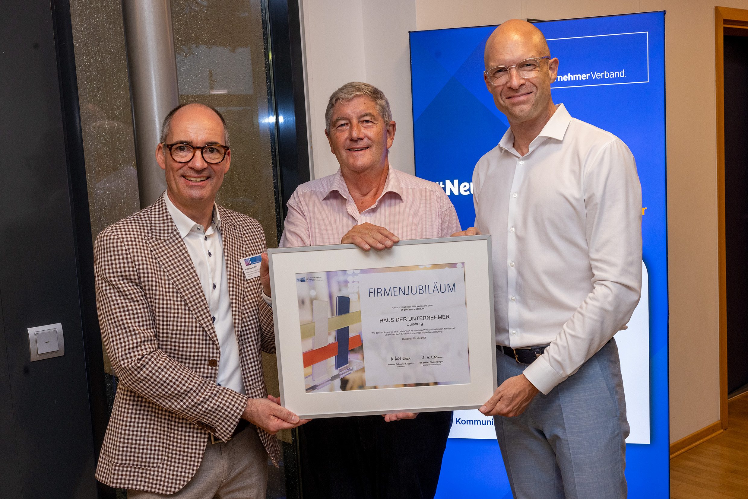 Unternehmertag und gleichzeitig 25-jähriges Jubiläum des HAUS DER UNTERNEHMER – das feierte der Unternehmerverband am 2. Juli 2025 mit 300 Gästen aus Wirtschaft und Politik. Die Keynote hielt einer der renommiertesten Verfassungsrechtler in Deutschland, der ehemalige Bundesverfassungsrichter und gebürtige Duisburger Prof. Dr. Dr. Udo Di Fabio.