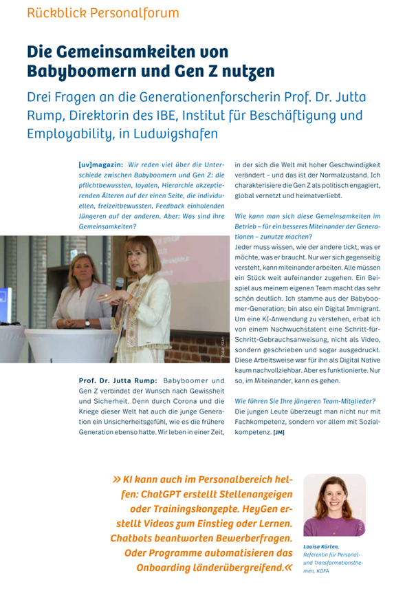 [uv]magazin: Wie kann man sich diese Gemeinsamkeiten im Betrieb – für ein besseres Miteinander der Generationen – zunutze machen?