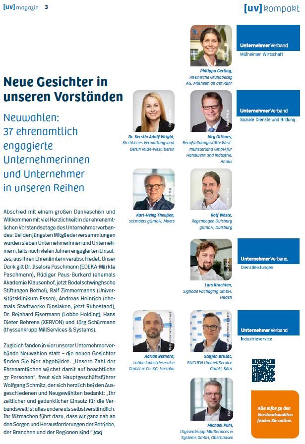 Weiter unter Vorsitz von Michael Reichelt von der Lebenshilfe Duisburg wurden vier neue Vorstandsmitglieder gewählt: Dr. Kerstin Adolf-Wright, Jörg Olthues, Rolf Wöste und Karl-Heinz Theußen. Vorstandswahlen beim Unternehmerverband Soziale Dienste und Bildung.